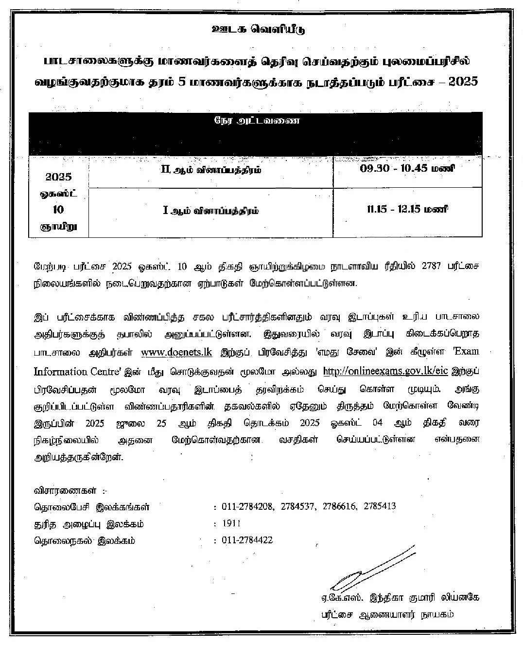 Mulika Piriven Final Examination Past Papers